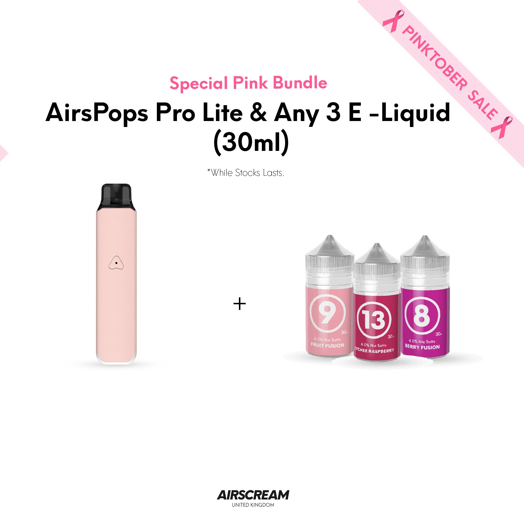 AirsPops Pro Lite & Any 3 E-Liquid (30ml) is backordered and will ship as soon as it is back in stock.